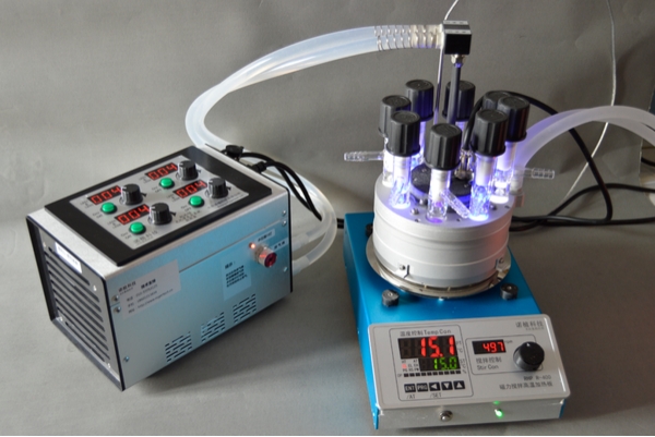 RLH-18八位光反应系统可以支持-30℃至80℃间不同反应温度,需要加热磁力搅拌器和外置循环冷水机的配合。10℃以下的反应温度,因为低温凝露问题,通常建议在手套箱、低温冰箱或我们特别提供的低温反应箱中进行。