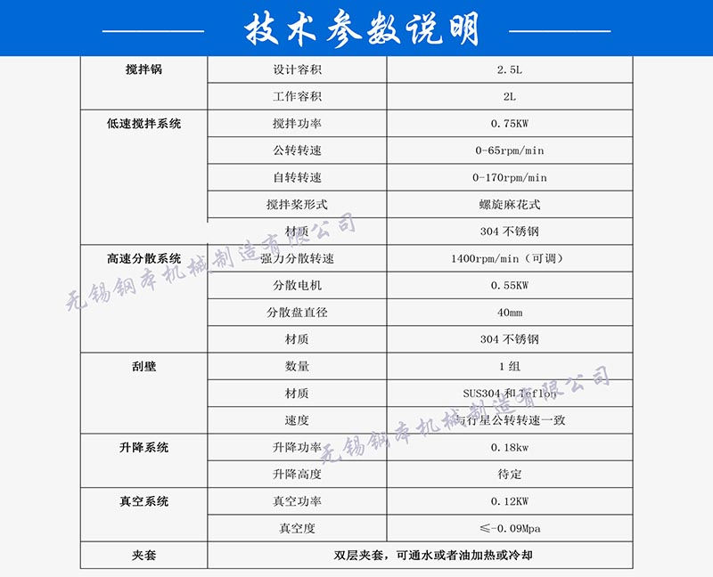 2.5L双行星混合搅拌机是一种新型且对多种液体、粉体进行混合搅拌、溶解、分散、均质的高效搅拌设备,行星分散 混合机(2.5L行星搅拌机)有高速、低速、活动刮板三轴,行星分散混合机广泛应用于高粘度电池、涂料、有机硅胶、油墨、染料、粘胶剂等。